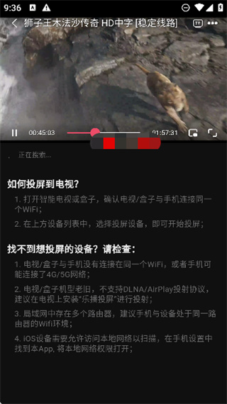 3、选择同一网络下的可用设备进行连接,即可成功将视频投放到大屏设备上,畅享高清观影体验。