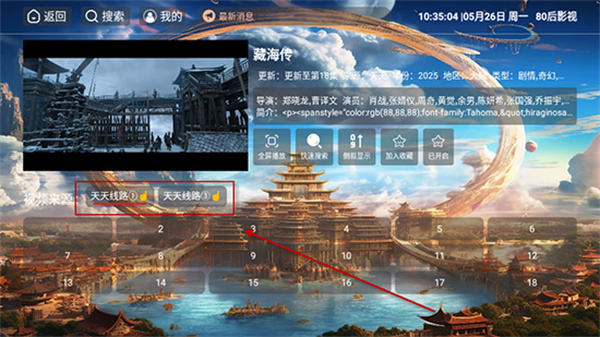 4、播放卡顿时可手动或自动切换多条播放源,解决卡顿问题,确保流畅观影。