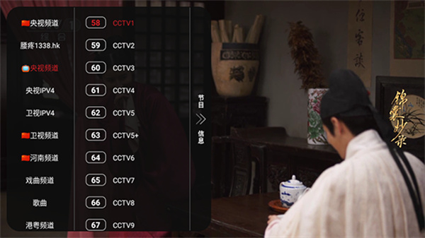 3、首页点击“直播”板块,进入央视、卫视直播列表,点击对应频道即可观看。