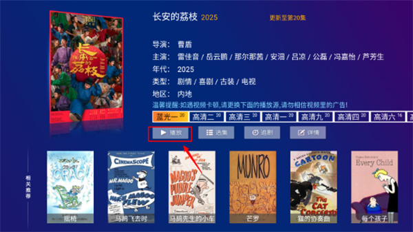 4、进入播放详情页,点击"播放"即可观看,还有多个播放源可以切换。