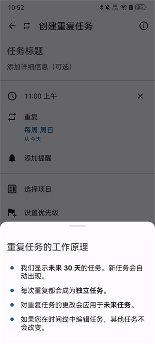 设置每日、每周或自定义时间表的重复任务。永远不要忘记日常活动。