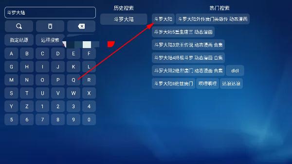 2、然后输入你想看的剧名手写字母,接着选择你的搜索结果。