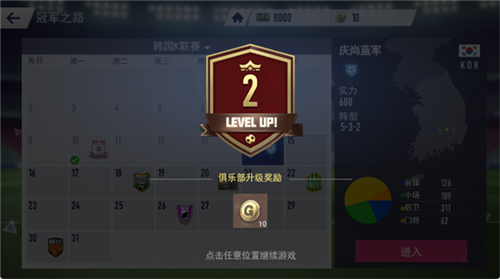 参与 “冠军之路” 等赛事可提升俱乐部等级,升级后能获得金币等奖励,这些奖励可用于后续球队建设。
