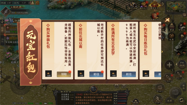 江湖历练内拥有各种各样的悬赏任务,完成可获对应奖励,还能解锁直购礼包。