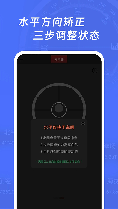 多多指南针是一款方向识别软件。打开就能马上知道当前所在方位,不需要任何复杂设置,点一下就能快速定位,核心功能包含实时方向显示、经纬度坐标查看和水平仪校准,无论是日常找路还是确认设备是否摆平,都能轻松搞定,特别适合出门在外或动手安装东西时用。