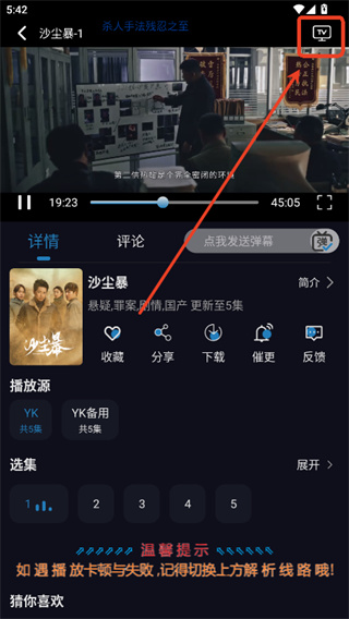 2、点击右上角TV投屏。