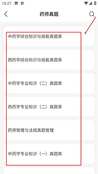 3、你可以选择点击【药师真题】这个选项,之后就能进入到药师真题的科目选择页面了。