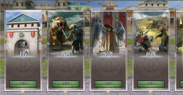 如果主君想在称霸之路上寻找志同道合的伙伴,不妨试试加入军团。加入军团可以提升角色强度,购买稀有道具,还能在战训中获得强力装备。加入军团后,主君可以在军团-功能页面一览军团的所有功能,点击“传送”便能进入军团领地,自动找到对应NPC。