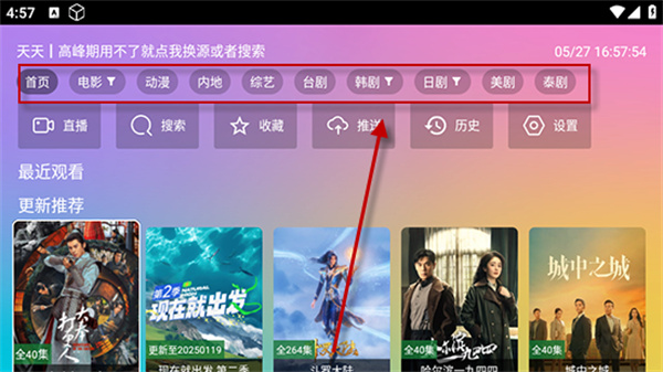 1、在本站内下载与安装并打开软件,进入软件首页,首页顶部栏有 “电影”“电视剧”“综艺”“动漫” 等分类,点击相应分类可浏览该类别的影视资源。