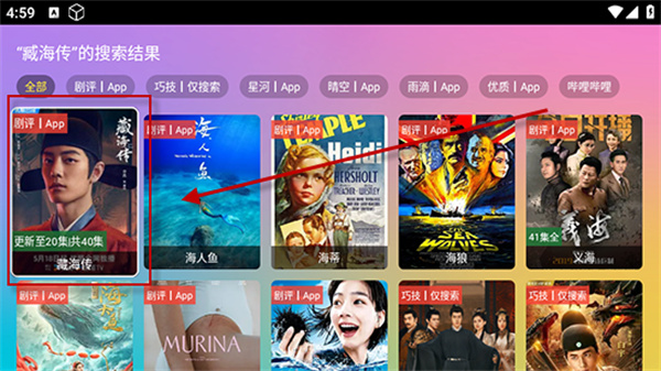 2、在搜索栏中输入想要观看的影视关键词,也能找到目标影视资源。