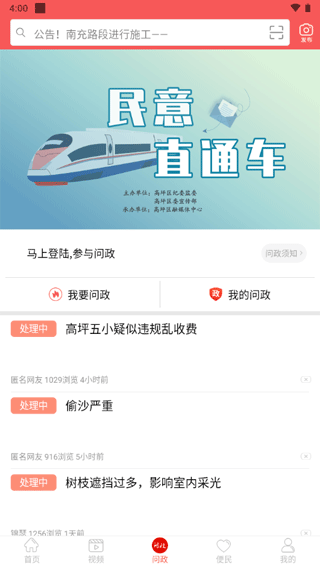 1、下载并安装本站提供的app,打开进入,点击【问政】
