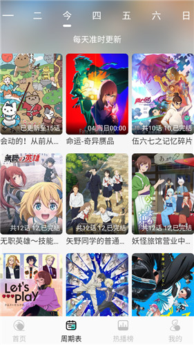 2、再通过周期表频道,可了解当天更新的动漫剧集