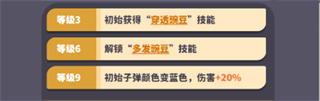 5、特定等级解锁更强技能,比如豌豆小子9级后子弹伤害永久提升。