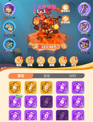 5、领主穿戴装备镶嵌宝石,激活套装加成,属性提升直观可见。