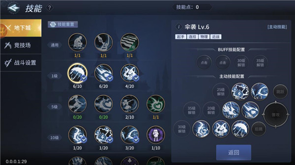 进入到进技能界面后我们首先使用材料对各种技能进行升级,升级后我们点击配置技能,我们尽量将高等级的技能添加到右侧中,随着等级的升级还会解锁更多的技能。