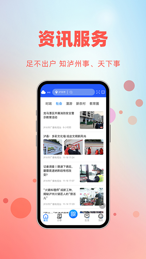 4、整合泸州电视台、广播、报纸内容,图文视频直播全都有,本地资讯不漏看。