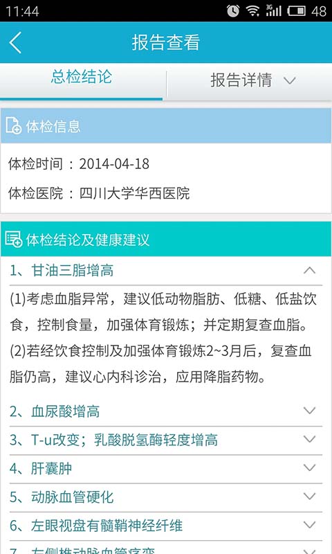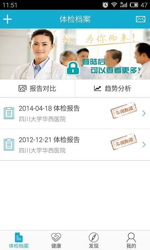 3、检后:体检档案在线查询、历年体检档案对比、重要指标趋势分析、在线各科专家健康咨询门诊、个性化健康教育等业务。
