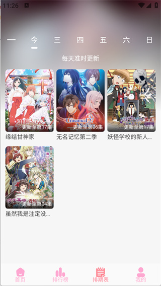 4、排期表将每天动漫更新情况进行整理。