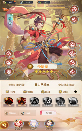 1、六星被动:T0,普攻后自身增伤10%,持续7回合且效果可叠加,是孙悟空持续爆发的核心,叠满后输出呈指数级增长。
