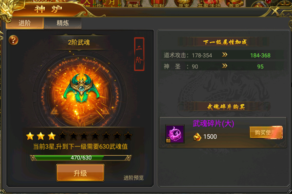 武魂是用来加成道术攻击和神圣伤害的,这个对于喜欢玩道士的朋友建议可以多升升武魂,道术攻击的加成高,武魂碎片的产出在商城,材料副本,与水晶争霸活动均有产出,大家按时参加水晶争霸,可以获得不少的武魂碎片。