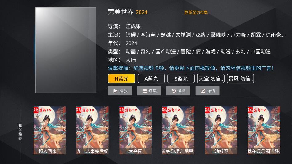 此外,新菜鸟TV版的界面颜色看着舒服不刺眼,尤其是晚上自动调暗亮度,长时间看也不累眼。操作时的小细节也很贴心,比如拖进度条、换清晰度都有动画效果,用起来更顺手,整体设计既保证了功能实用,又让视觉体验更舒服,让人能专心看剧,不会被复杂的操作分心。