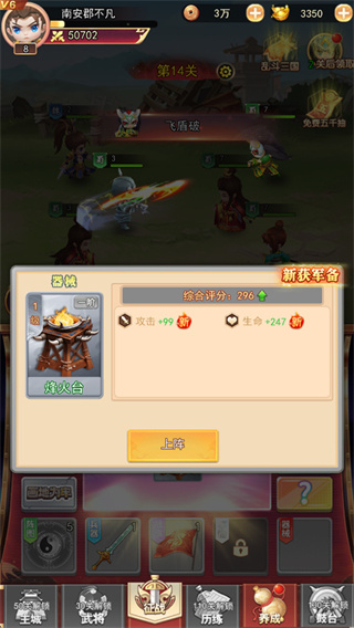 4、玩家还可点击武将,给他们穿戴套装装备;