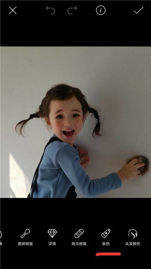 我们将屏幕下方的选项左滑,找到“肤色”选项,并且选中该选项