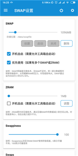ZRAM设置:需要内核支持,切换ZRAM容量可能需要很长时间来回收已用的ZRAM空间