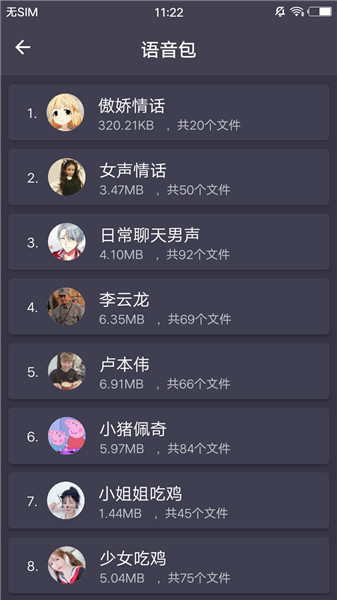 1、这里有小编喜欢的语音包是蜡笔小新和小猪佩奇,你呢,反正你还有李云龙、吃鸡少女、傲娇情话、女生情话、日常聊天男孩等多种选择;