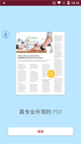• 商务人士:扫描每一张发票、名片、收据、合同、会议纪要或其他商业文档。将多页文档扫描在一份PDF文件中集中保存。