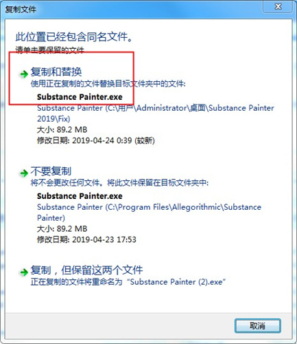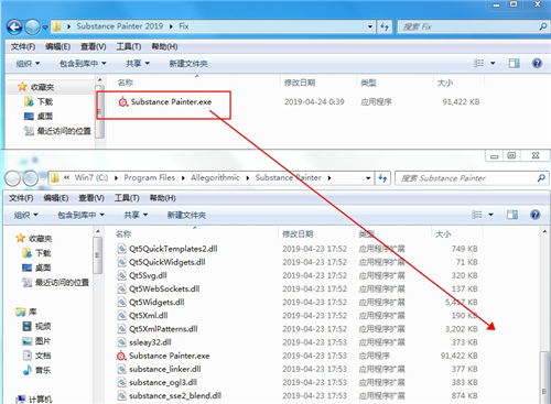 8、将"fix"文件夹中的破解补丁“Substance Painter.exe”复制到软件的安装路径目录中“C:Program FilesAllegorithmicSubstance Painter”中;