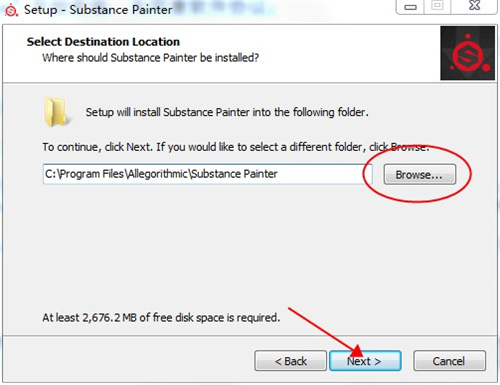 3、软件默认安装路径为【C:Program FilesAllegorithmicSubstance Painter】用户可以点击“Browse”更改目录,小编这里默认安装;