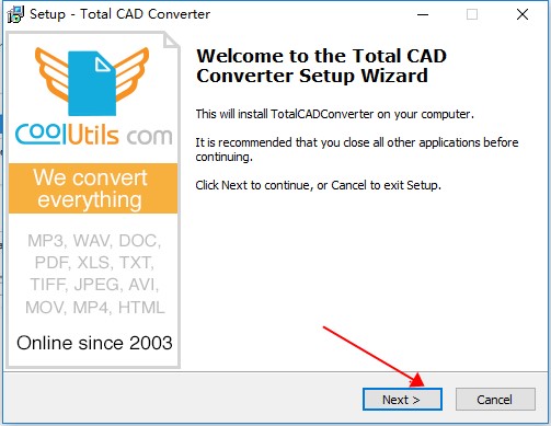 1、下载数据包然后解压,双击“TotalCADConverter.exe”点击OK