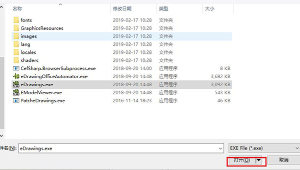 3、运行破解补丁,弹出窗口,选择eDrawings.exe文件,点击打开。