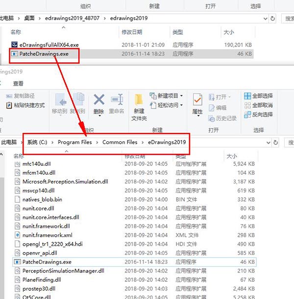 2、将软件包中的破解补丁复制到软件安装目录下,默认安装在C:Program FilesCommon FileseDrawings2019目录下