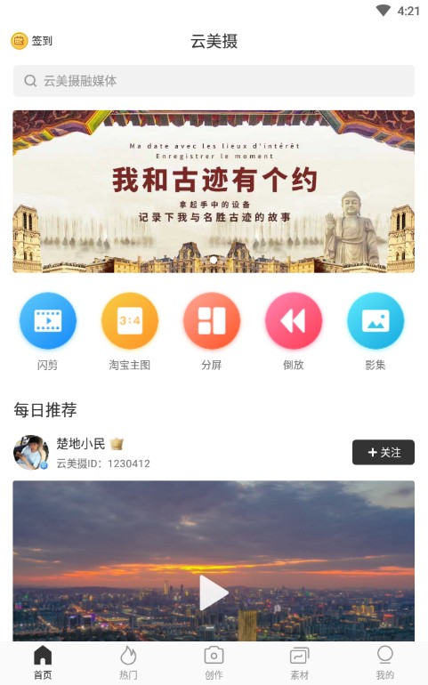 【创作达人】聚合着经过平台认证的剪辑师,用户可以与剪辑师沟通进行视频剪辑制作的交易。优选社区超酷视频,入驻海量网红,颜值才艺样样有,时尚热点、逗比搞笑、闪耀红人,你想要的,美摄都有!