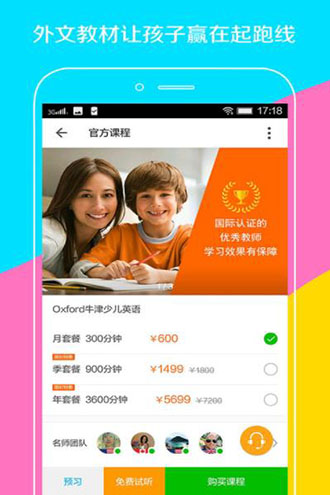 老师会根据学生的试听情况为学生量身制作英语学习计划,另外,欧美国家流行的儿童动画,各类有趣的儿童绘本和英文歌曲,丰富的视频素材应有尽有,满足不同需求。3、随时随地,想学就学