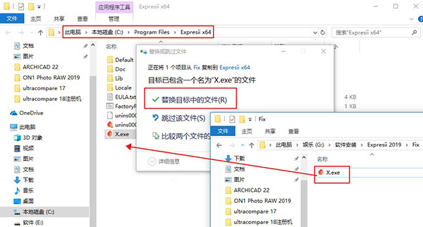 5、将破解补丁复制到安装目录下替换原文件即可,一般默认安装目录为“C:Program FilesExpresii x64”