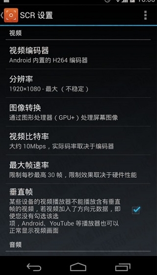 1、用户可以自由调整的视频参数有视频编码器(软/硬编解码器)、视频分辨率、图像转换处理器(CPU、GPU 或两者混合)、视频比特率、最大帧速率(旗舰机可以调到最高,中低端机要适当降低)、垂直帧(用于录制竖屏视频)。此外你也可以调整音频来源(例如用麦克风录入声音)和音频采样率参数