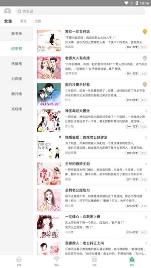 女频热门图书:早安,老公大人、冷少的替身妻、乱世王妃、庶女惊华:一品毒医、帝少独宠小甜妻、闪婚老公太抢手、一吻成瘾、绝宠亿万甜心 热门出版图书:欢乐颂、三体、十年一品温如言、诡案组、三生三世十里桃花等。