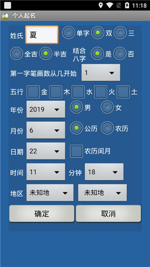 6、在专业起名app“文件”菜单“输入生日信息”,可直观第选择年月日时等信息。效果与“输入生日文本框”相同。