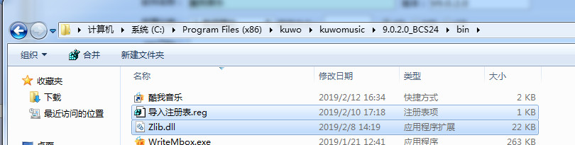 3:将酷我音乐补丁文件夹里面的两个文件复制到安装目录下。运行“导入注册表”即可。
