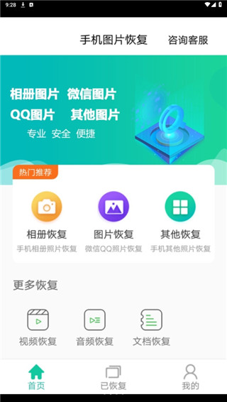 1、更多文件恢复类型;2、一键深度扫描照片;