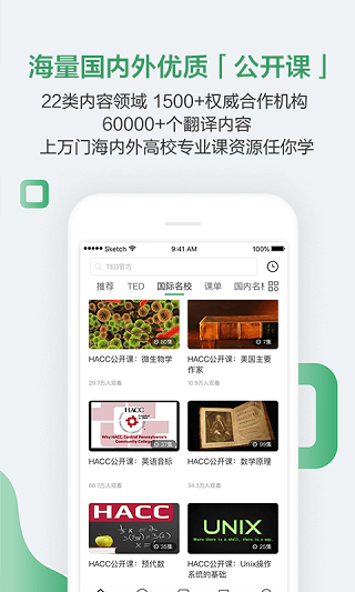 各位用户如果你想要通过一个网络平台学习一些趣味课程,或者是了解一些科技咨询,那么小编为你准备了网易公开课app这款应用程序,它为用户提供了丰富的线上课程,让你可以充分利用业余时间进行线上学习,你可以选择观看不同的教学视频,为你在想要学习的时候,带来最优质的教学内容,不仅如此,该应用更是提供了教学追踪的功能,通过这个功能的帮助,你的学习进度会被程序所记载,让你可以妥善管理自己的学习进度,所以各位用户,网易公开课是你不能错构的网络课堂,赶快加入吧,选择一门你感兴趣的课程即可。