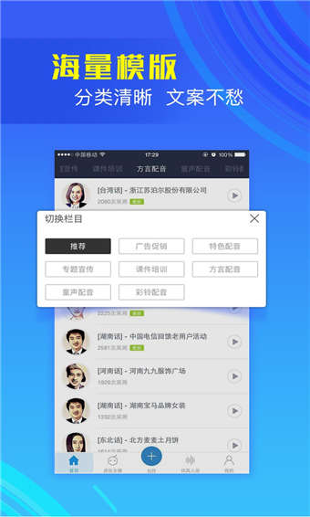 3、文案丰富:海量样音模板文案、优质背景音库,完美搭配