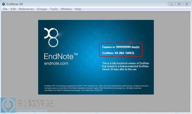 7、打开endnote x8快捷方式,可以看到已经解除了试用限制,更改为9999999999天,说明软件成功破解,用户可以免费使用。