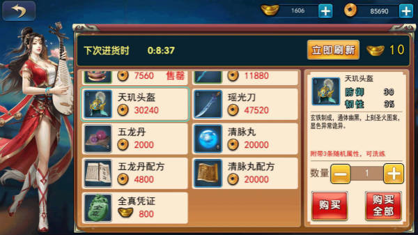 天玑盔、瑶光刀需要好感度达到100以上,才可以购买;
