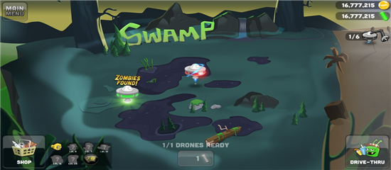 将经营与冒险的元素结合起来,形成了一种比较有趣的玩法。在捕捉僵尸的环节里玩家操控的外星人小哇头顶血条,被手持武器的僵尸攻击或小动物撞到都会失去一点血量,血量掉完这场捕猎就会结束。游戏内登场僵尸有20多种,虽然他们见到小哇都会落荒而逃,但是不同的僵尸有各自不同的逃跑方式、属性和装备。比如有的僵尸穿着木桶的盔甲,如果不去爆头,就得多次射击打爆木桶才能抓住它。