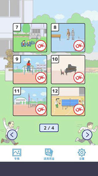第九关:石凳上的书不要拿,点击学长左边的校服,将衣服移至学长身上,在学长身体往后仰到最下面时,点击下方躲藏在衣服后逃脱
