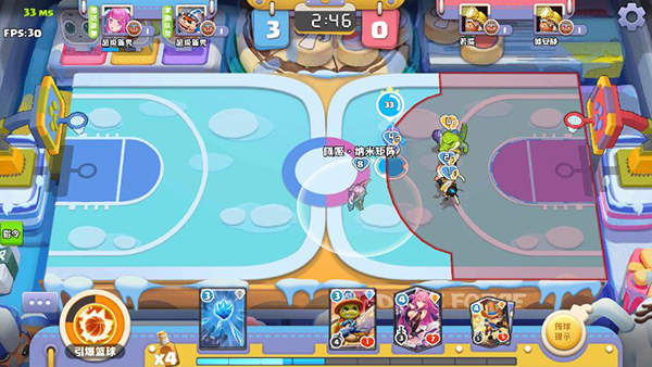 一、每场比赛分为3波,率先夺得八分的一方直接获胜,否则在限定时间内比对方分数高,则获胜。在比赛开始之前,先由中场发球,双方抢夺球权,率先抢到球权的一方可以抢夺先机,率先发起进攻。二、在防守过程中,需要把控好角色卡牌的上场位置,由于上场后球员只在一定的攻击范围内移动,位置相对固定,若是放置位置不合适,极易错过攻击方的进攻路线,从而难以攻击到敌方进攻卡牌,让对方在我方毫无防御的情况下,投入我方篮框下赢得比赛。